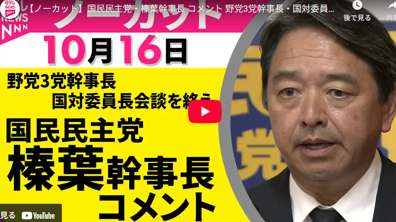 【ノーカット】国民民主党・榛葉幹事長 コメント 野党3党幹事長・国対委員長会談を終えて── 政治ニュース(日テレNEWS)
