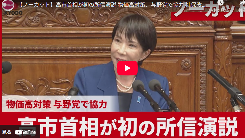【ノーカット】高市首相が初の所信演説 物価高対策、与野党で協力 社保改革へ国民会議 防衛費増、本年度達成