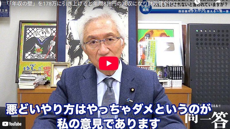 「「年収の壁」を178万に引き上げると年間8兆円の減収になり財政健全化に悪影響を及ぼすと言われておりますが、これは正しい数字なんでしょうか?」西田昌司がズバッと答える一問一