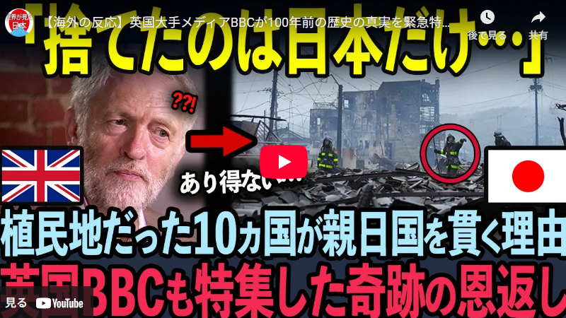 【海外の反応】英国大手メディアBBCが100年前の歴史の真実を緊急特集!世界各国が親日を貫く理由に世界中が涙